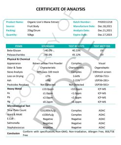 - Optimal extraction of mushroom Beta-Glucan ≥ 40%, Polysaccharides ≥ 45% @ 7:1 Ratio Concentrate