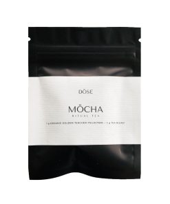 DÖSE MOCHA RITUAL TEA is offered to give you a sweet nostalgic embrace of warm mint cocoa with subtle notes of red clover, lavender and anise to provide a creamy richness to round out this earthly yet delicious taste profile. This specially curated organic tea blend will mask the taste of mushroom beautifully while mitigating instances of nausea and upset stomach through the steeping process. Ingredients: cocoa powder, mint, rooibos, chamomile, lavender, anise, red clover + one gram golden teacher mushroom.