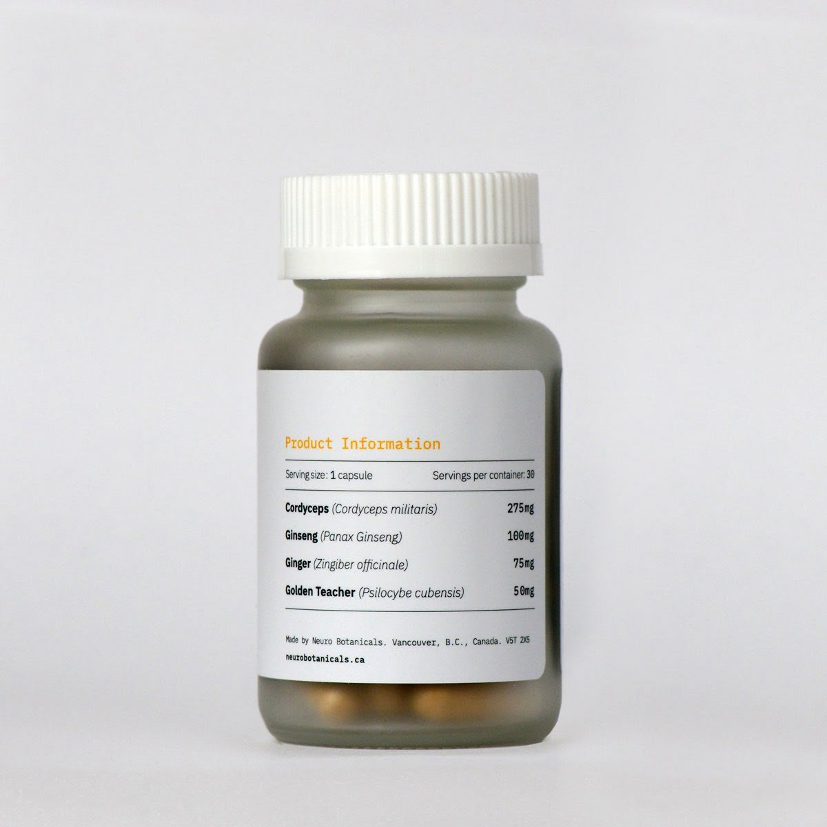 Get a competitive edge naturally with Neuro Botanicals‘ Energy blend. Research supported doses of Cordyceps, Panax Ginseng, Ginger and Golden Teacher mushrooms work together to boost stamina while improving vitality and overall physical performance.