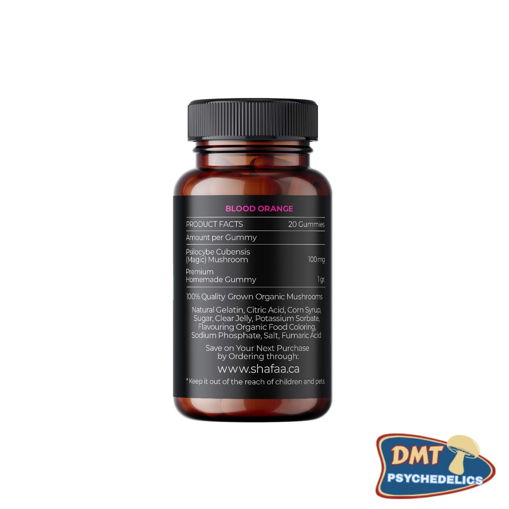 Each bottle consists of 20 gummies (each gummy contains 100mg of shrooms):